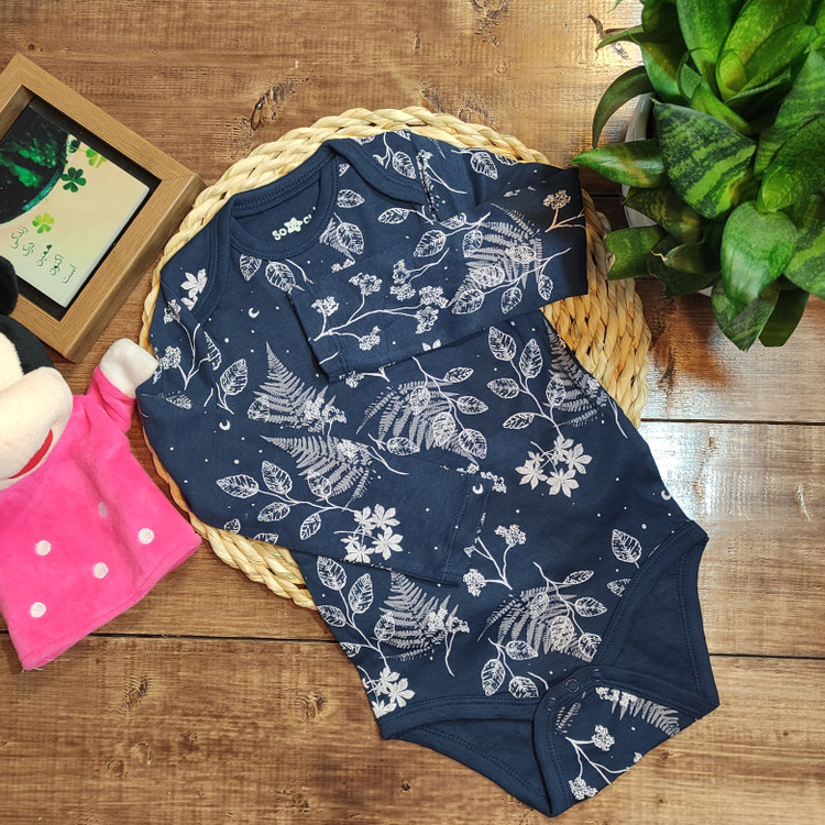 جزئیات سایز بادی سرمه ای گلدار سایز 18تا24ماه