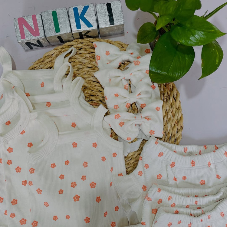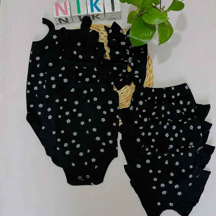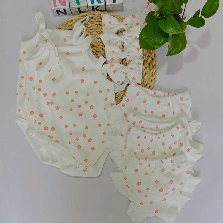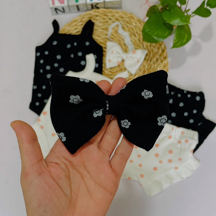 ست ۳تیکه بادی رکابی و شورتک و هدبند جنس نخ پنبه کبریتی کشی